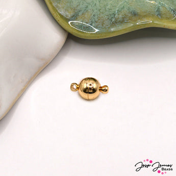 Secure your jewelry designs with ease using this 18K Gold Plated Brass Magnetic Clasp. Featuring a sleek round design, this clasp is both functional and elegant. Made from nickel-free brass and plated with real 18K gold, it offers durability and a luxurious finish. Measuring 14x8x8mm with a 1.4mm hole, this magnetic clasp provides a strong, reliable closure while enhancing the beauty of your necklaces, bracelets, and more.