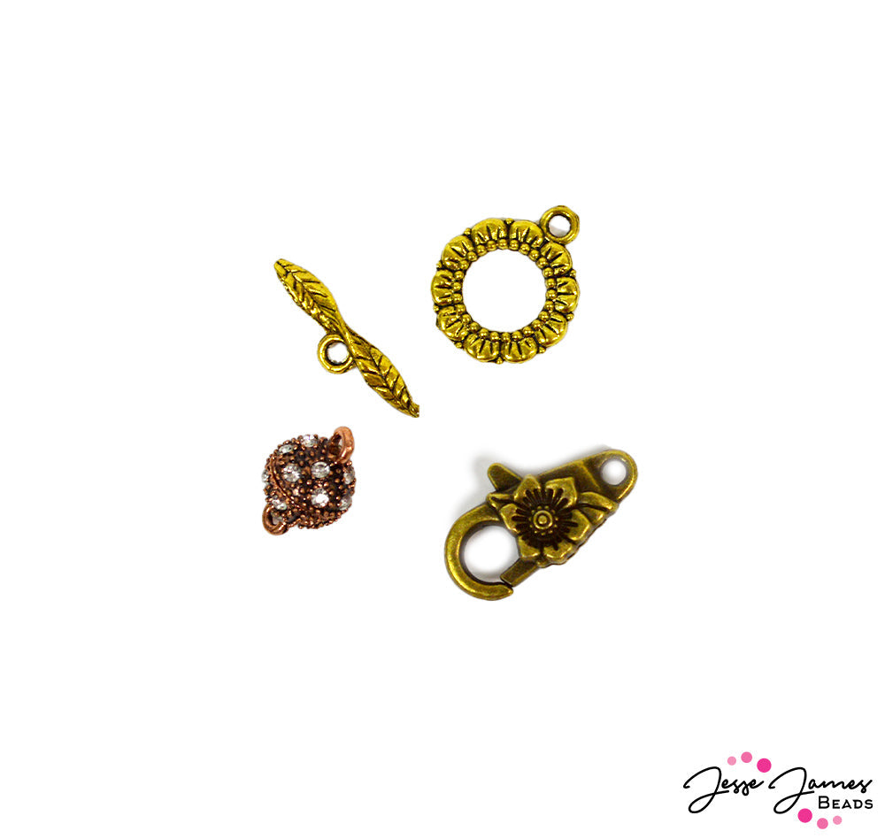 Don't forget the perfect finishing touch on any project. This trio of clasps features a floral lobster clasp, a rhinestone magnetic class, and a floral inspired toggle clasp.