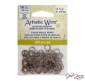 Permanently colored copper wire finished in an antique brass color. 100 pieces per order. Rings measure 5.95 mm.