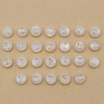 Add a personalized touch to your jewelry designs with our Natural Freshwater Shell Beads, featuring stunning golden-plated brass-etched metal embellishments. These flat round beads, in a soft seashell color, each feature a unique letter from A to Z, perfect for creating custom, alphabet-themed jewelry. The beads measure 8x35mm and come with a horizontal hole size ranging from 0.50-0.70mm, making them ideal for necklaces, bracelets, and earrings. Each set includes approximately 26 pieces, one for each letter of the alphabet, allowing you to craft meaningful, personalized pieces.