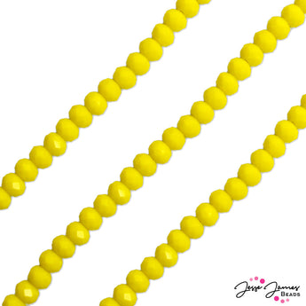 Create a pop of bright color with this bright yellow opaque style glass bead set. These bright beads pair beautifully with Jesse James Beads mixes and strands in yellow and orange hues. All Thunder Polish glass features approx 13 inch strands featuring sparkling glass beads perfect for symetrical and asymetrical projects. Ideal for necklaces, bracelets, earrings, and more.