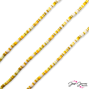 It's always sunny at Jesse James Beads. These bright yellow beads feature various yellow tones. JJB Heishi beads are hand cut polymer clay beads strong on 14 inch strands. 4mm heishi beads. These beads are lightweight and ideal for bracelet making, earrings, necklaces, or crafting. Thin 1mm heishis are perfect for paper crafts and more.
