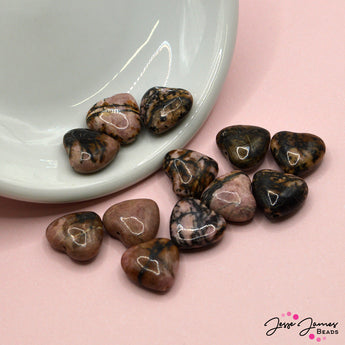 These beautiful natural stone pink beads are the perfect touch to any jewelry design. Each bead measures 15mm x 14mm. These beautiful heart-shaped beads feature their own unique color and texture due to the natural stone, giving each piece it's own unique marbling of color!