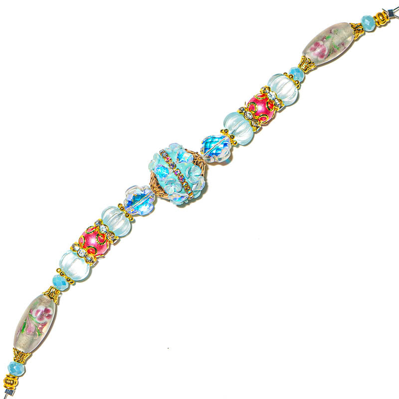 Boho Bead Strands in Teals of the Tides is a classic mix of the elegance from times past. Each 7-inch strand is a soft mix of light blues, pinks and clear beads with accents in gold, and dorned with delicate flowers, perfect for creating beautiful Victorian era jewelry. 25 pieces. Beads range in size from 3 mm to 20 mm.