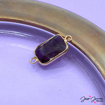 Enchant your next jewelry creation with this stunning connector. This cosmic beauty features a natural amethyst focal Perfect for bar bracelets, necklaces, and more! Easily add your favorite charms, beads, and cord using the connectors on each side. Each piece measures 11mm x 25mm.