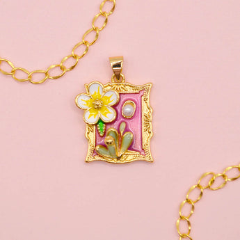 Bring a graceful, feminine touch to your jewelry creations with this Flower Brass Enamel Charm accented with an ABS plastic imitation pearl. Featuring a rectangular shape and plated with real 18K gold using durable rack plating, this charm is both cadmium-free and lead-free for safe, long-lasting wear. Measuring 22.5mm x 19mm x 6.5mm with a 3.5mm x 5mm hole, it’s easy to incorporate into necklaces, bracelets, or other personalized designs. Elegant, charming, and beautifully detailed, this piece adds a refined floral accent to any accessory.