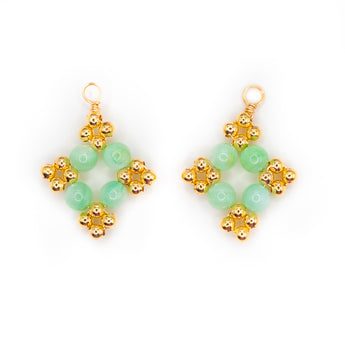 nfuse your jewelry creations with natural beauty and a hint of luxury using these Natural Dyed Freshwater Shell Pendants. Crafted in an elegant rhombus shape, each charm showcases the unique luster of dyed freshwater shell in a vibrant mix of colors. Accented with golden plated brass round spacer beads, these pendants strike the perfect balance between organic charm and refined detail. Ranging in size from 21.522x16.517x4mm with a 2.5mm hole, they are ideal for bold statement pieces or delicate layered designs. Add a radiant, earthy touch to your collection with these eye-catching shell charms.