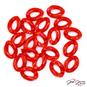 Show off your own personal style, mix and match your favorite colors to create your own custom acrylic chain! These links are easy to snap together and lightweight. Ideal for necklaces, earrings, and more. Each link measures 16mm x 22mm. 25 links per set (about 12 inches of chain snapped together). Green chain measures 18mm x 13mm, 30 links per chain (12 inches of chain snapped together)