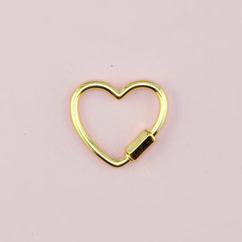 Create secure and stylish jewelry pieces with this 18K Gold Plated Brass Heart Screw Carabiner Lock Clasp. Designed for necklace making, this charm features a heart shape and a durable screw lock closure for added security. Plated with real 18K gold, it offers a luxurious, long-lasting finish. Measuring 21.5x24x2mm with a screw size of 7.5x4x4.5mm, this carabiner lock is perfect for adding a unique, heart-inspired element to your custom designs.