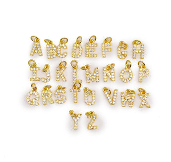 These stunning 18K Gold Alphabet charms are the perfect way to personalize your necklaces, bracelets, keychains, and more. Each letter is plated in 18K Gold. Cadmium, Lead, & Nickel Free for easy wear. Each letter measures approx. 12mm x 8mm. Size will vary very slightly depending on the letter shape.