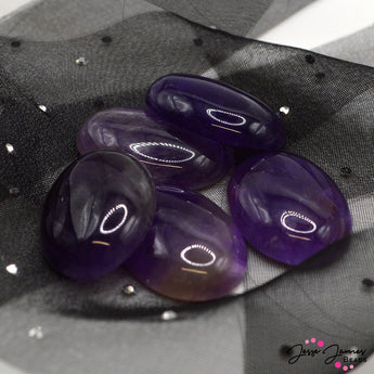 This simple oval cabochon features bold Amethyst beauty. This flat-backed cabochon is perfect for wire-wrapping projects. Apply to your favorite Bezel, add a bail, or create beautiful wire-wrapped focals with this bold purple stone.