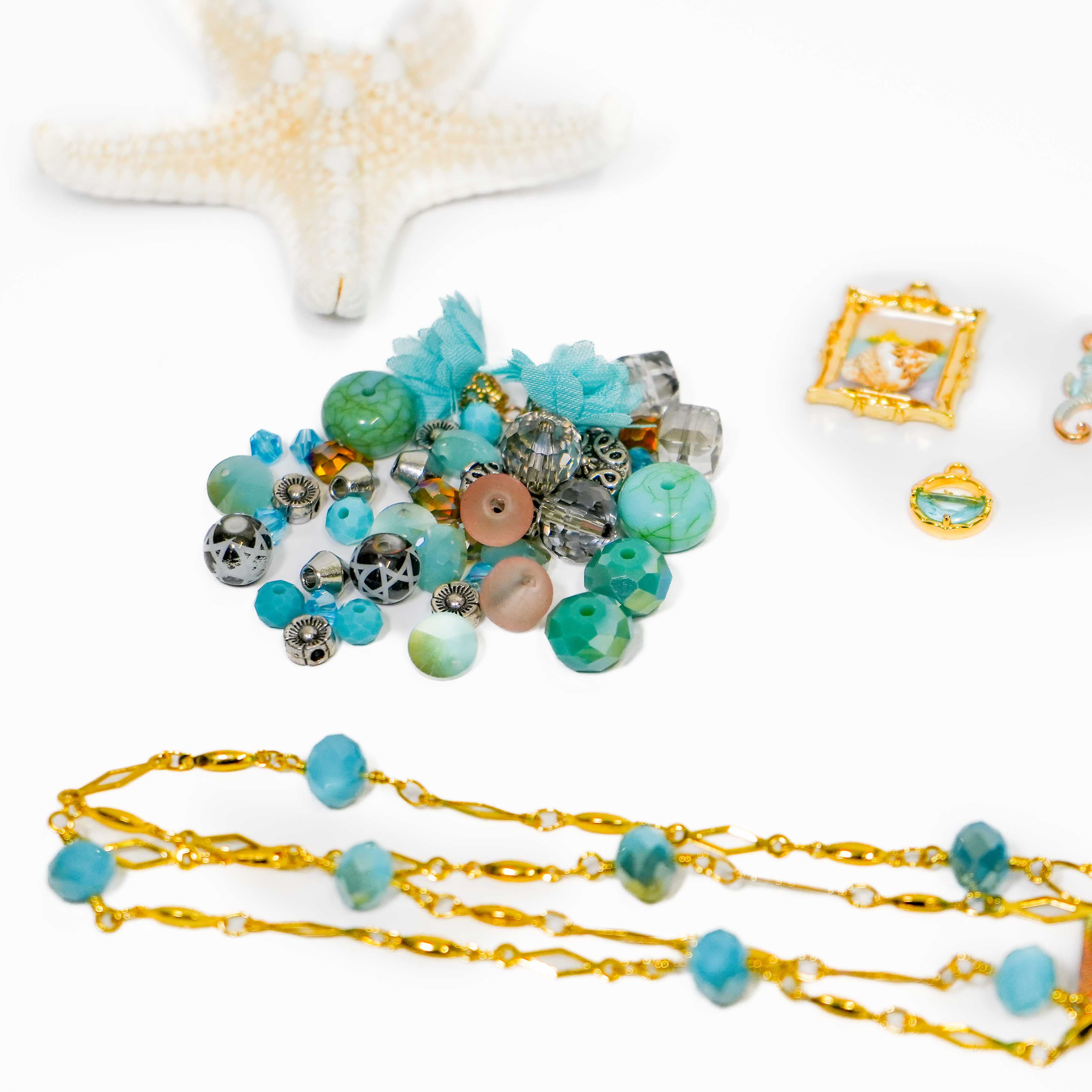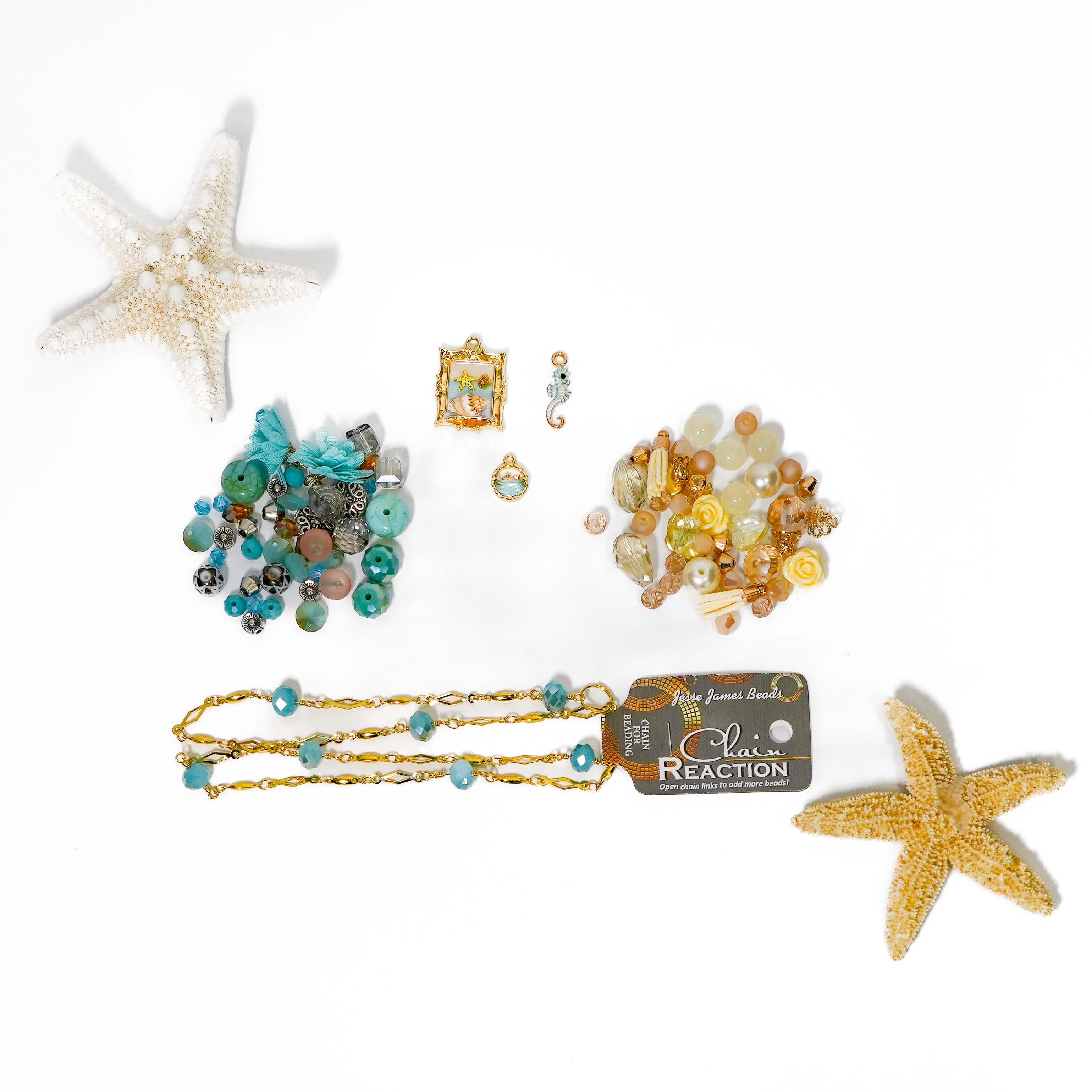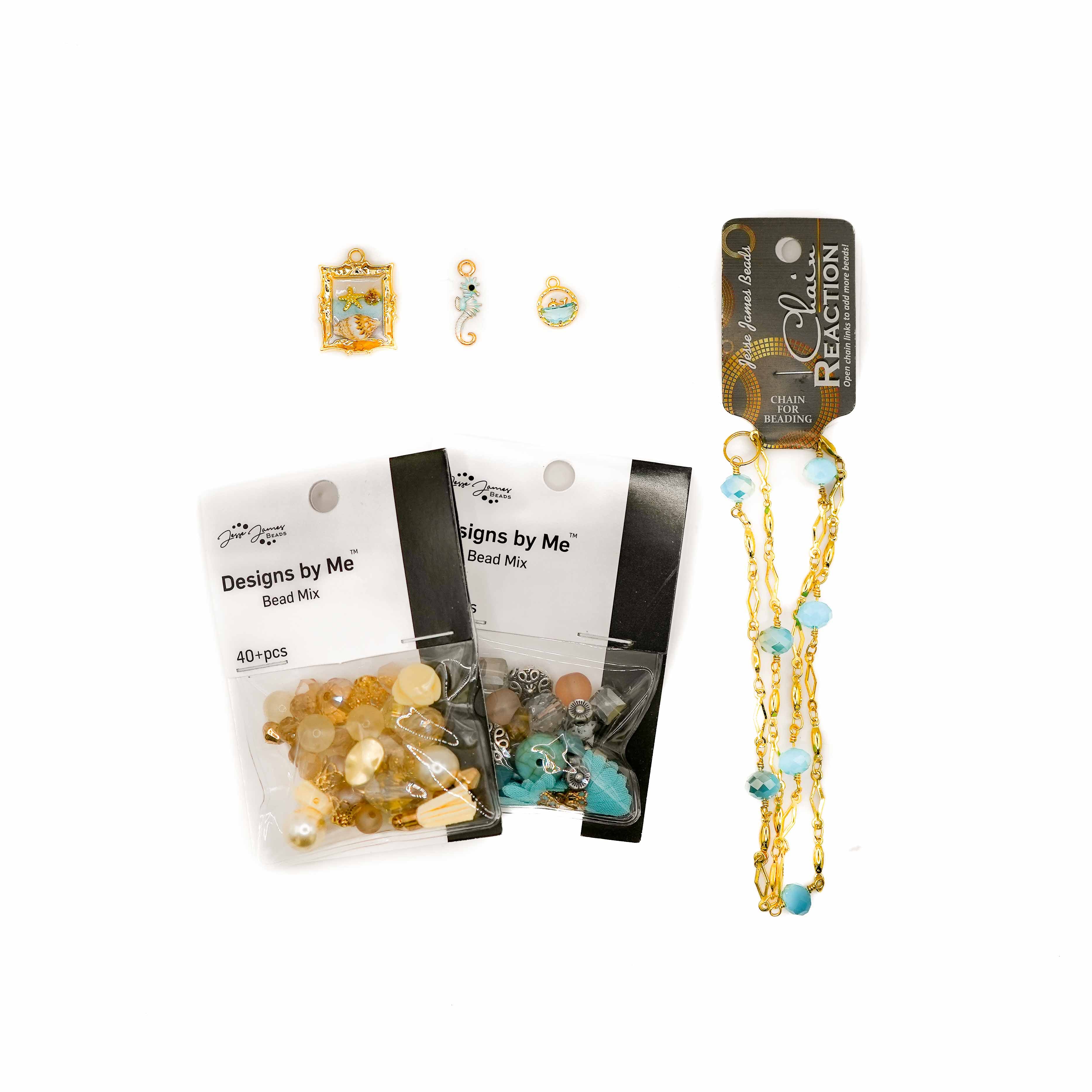 Get ready for a day on the beach with this stunning bundle of beach-themed beads. Each bundle includes a stunning trio of high quality metal and enamel charms featuring 18K gold plating, two stunning mini bead mixes, and accenting beaded chain from Jesse James Beads.