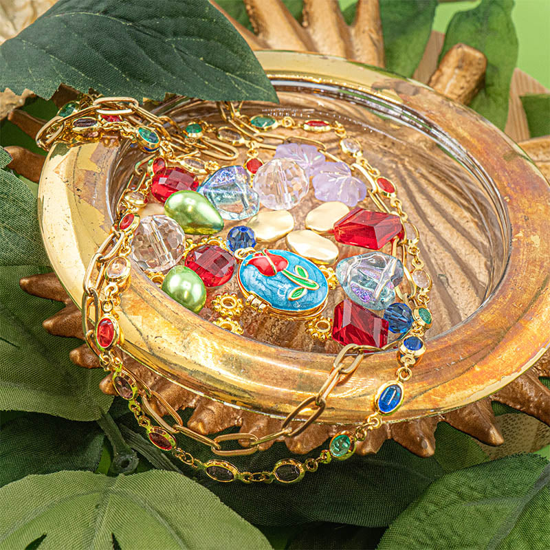 Bead Mix & Chain in Vibrant Rose Garden