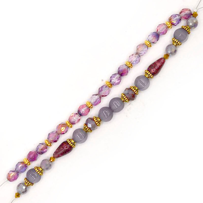 Rich and radiant, the Duo Bead Strand in Fig Jam is a 6 inch double strand brimming with deep, jewel-toned elegance. Featuring Czech glass, gleaming metal spacers, and eye-catching cat-eye style focal beads, this strand offers endless design possibilities. Use it as a ready-made bracelet base or incorporate its lush hues into larger creations for a touch of sophisticated warmth. Largest beads measure 10mm. Smallest beads measure 4mm.