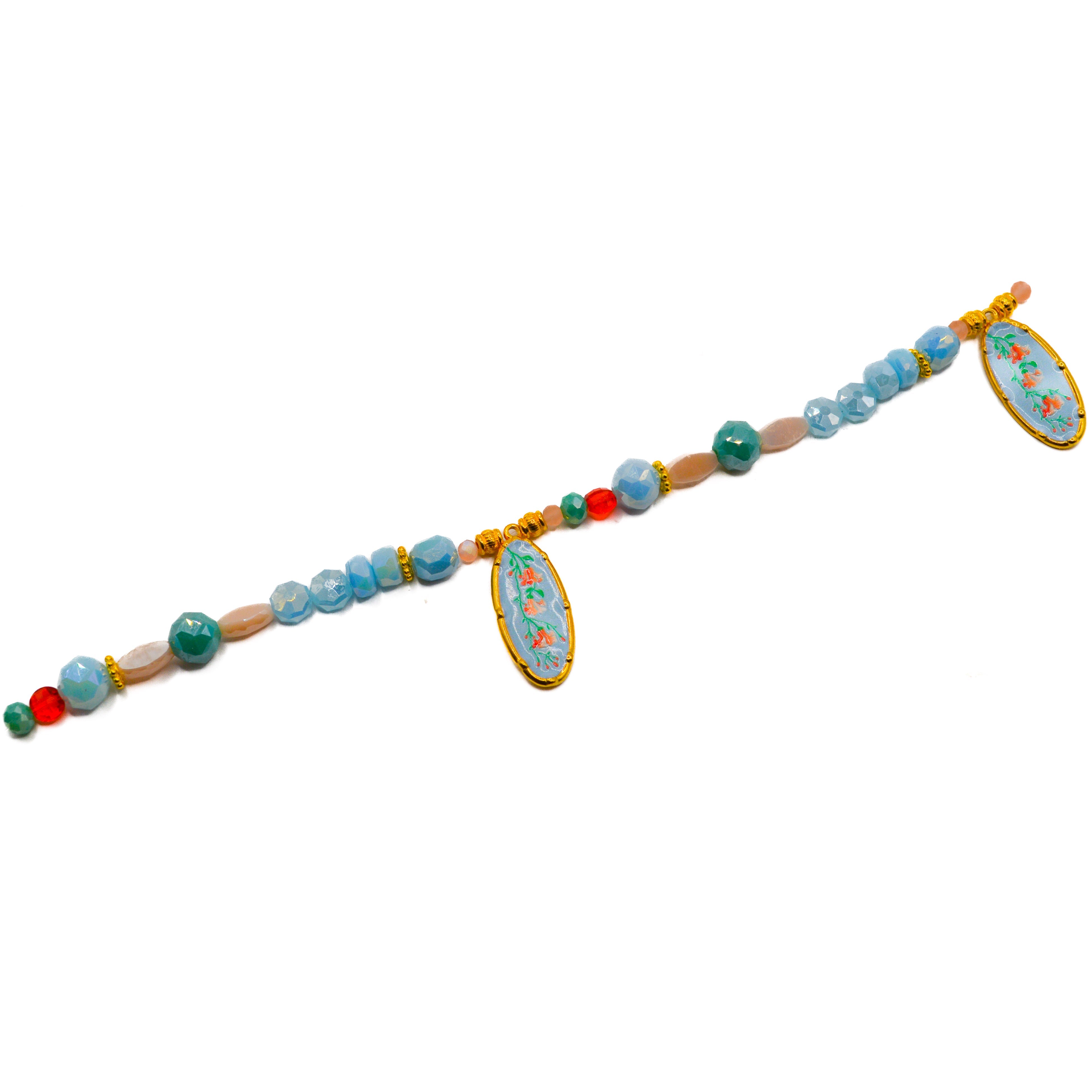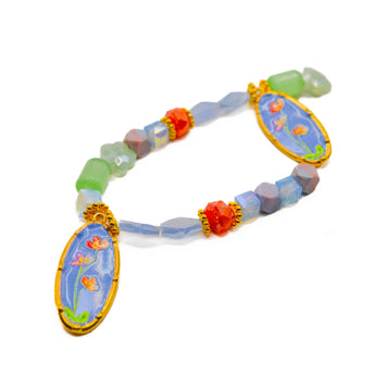This stunning and playful bite-sized bead mix features a pair of beautiful gold-plated enamel charms featuring a 304 stainless steel base and adorable flower accents. These pendants are accompanied by faceted glass rondelles, faceted glass rounds, and gold-plated metal spacers. Largest bead in mix measures 35mm x 14mm x 2.5mm. Smallest bead measures 4mm.
