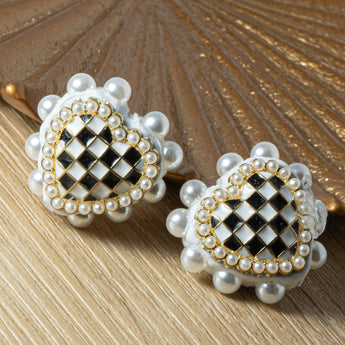 Bold and elegant, Boho Bead Pair in Hearts Royale features a pair of large heart-shaped clay focal beads with a classic checkered center, framed by luxe gold and faux pearl accents. Perfect for statement pieces, these beads blend playful pattern with regal detail. Each bead measures 24mm X 25mm X 15mm. Hole: 2mm.