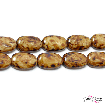 Earth brown speckled colors on these Czech beads make them a very Boho inspired set. Each oval bead measures 8mmx 14mm and comes in a set of 50.