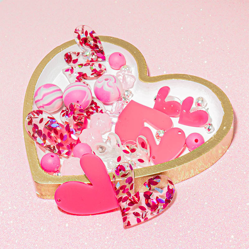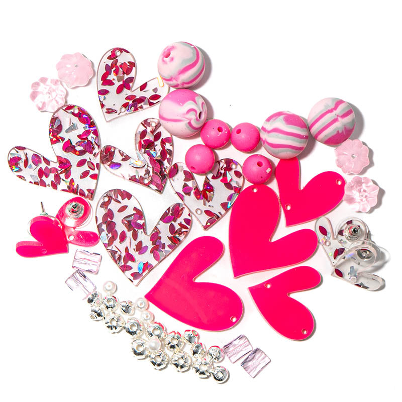 Create twice the fun with this double earring kit, featuring six acrylic heart beads and a coordinating bead mix to match. Designed to make two pairs of earrings, it’s perfect for crafting one set for yourself and one to share with a girlfriend.