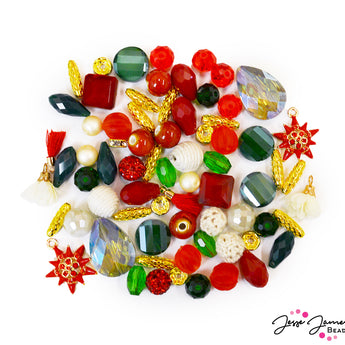 Bring a special seasonal sparkle to your jewelry with this gorgeous blend of glass, ceramic and festive fabric beads. Whether you're making an eye-catching necklace or some earrings to make your holidays merry, this mix of classic Christmas colors will add the perfect holiday magic!