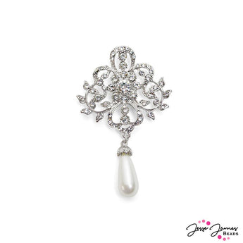 Something old, something new, something borrowed, something blue! Prepare the bride for her big day with this stunning statement pendant. This pendant features beautiful bright silver plated metal decorated with rhinestones and pearlized dangle. Pendant measures 77 mm x 50.5 mm x 8mm.
