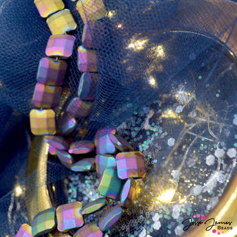 These beautiful Hematite beads feature a matte AB finish in bright red, orange, and other colors. 40 beads per strand. Each bead measures 10mm x 10mm x 4mm.