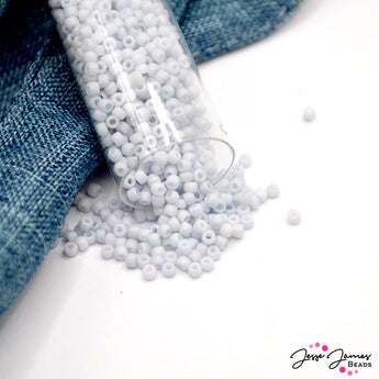This breezy light blue/grey hue adds a unique airy look to any jewelry project. Each tube contains 10 grams of sparkling seed beads. 11/0 seed beads measures approx. 2mm round.